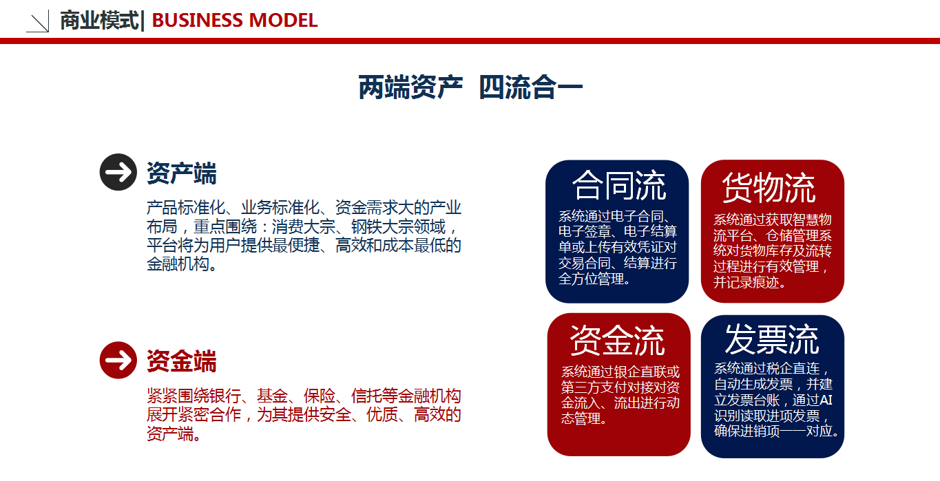 公司秉承“誠信、共贏、務(wù)實、創(chuàng)新”的價值觀,旨在成為金融機(jī)構(gòu)、中小微企業(yè)最值得信賴的大宗商品供應(yīng)鏈管理平臺,加速資產(chǎn)資金高效匹配,共筑大宗商品供應(yīng)鏈共贏生態(tài)圈。